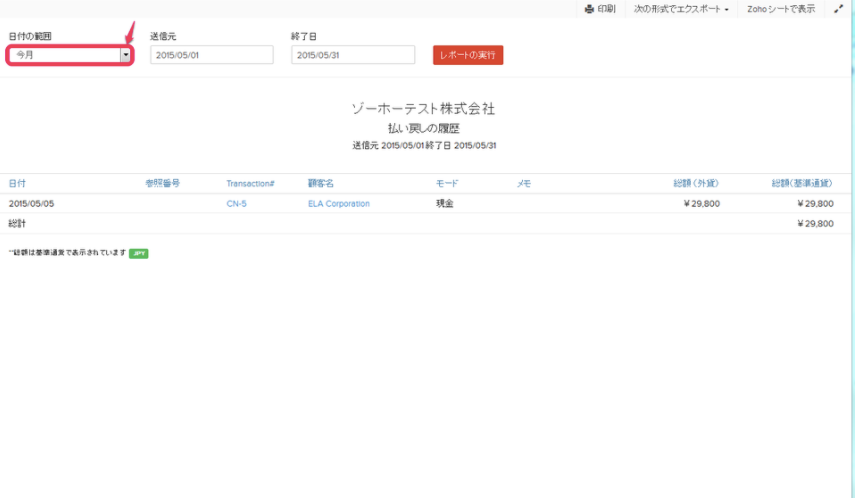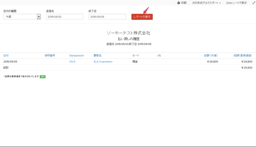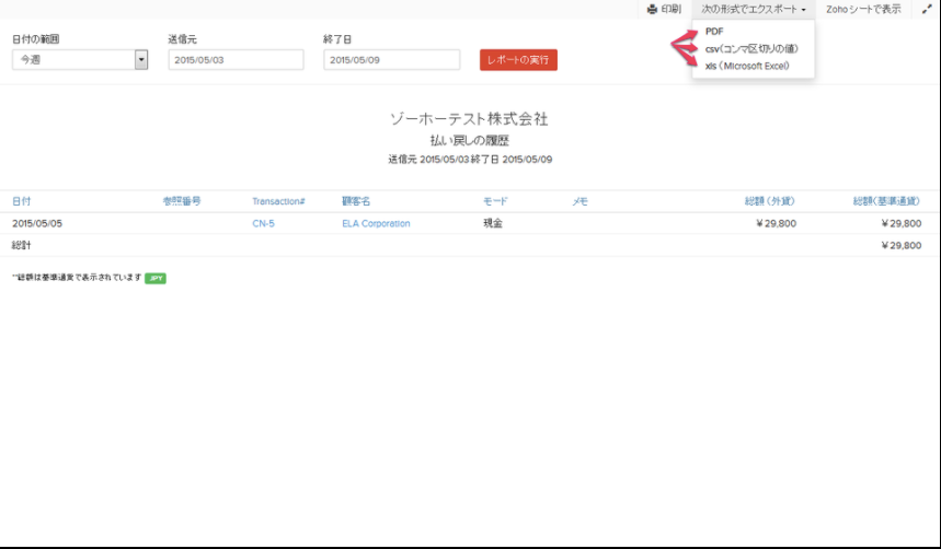 【Zoho Invoice】払い戻しの履歴のレポートを作成する
