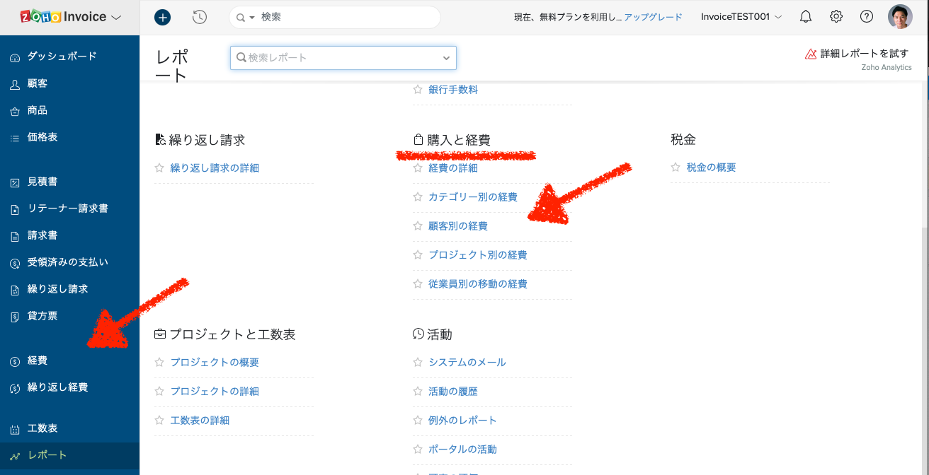【Zoho Invoice】 カテゴリー別の経費報告書