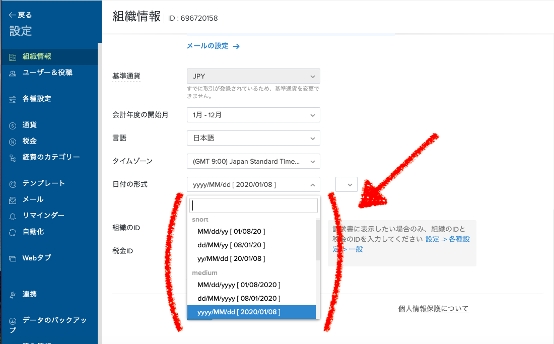右上歯車設定から、組織情報に入り、「日付の形式」で選択します。