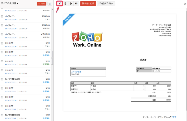 【Zoho Invoice】既存の見積書のテンプレートを変更する