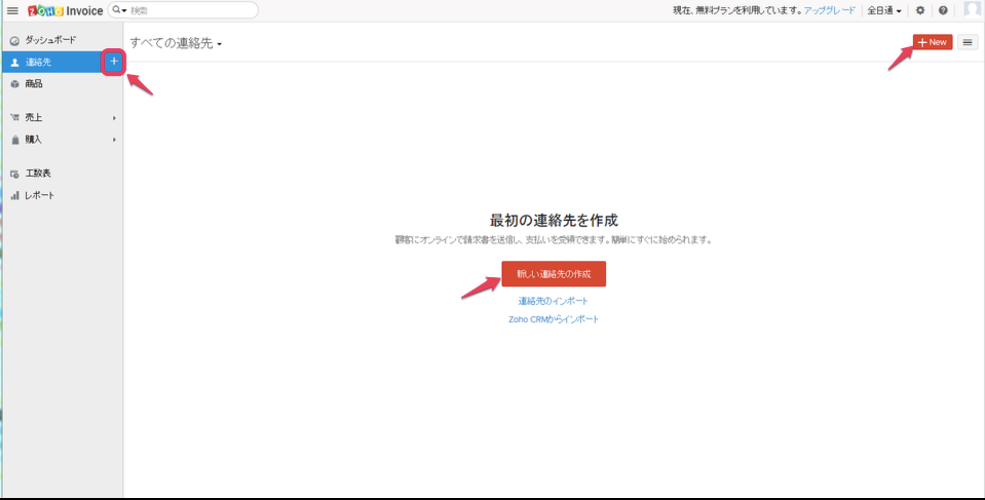 「新しい連絡先の作成」をクリックしても次のステップに進みますが、1件連絡先を作成した後は、この表示はなくなります。