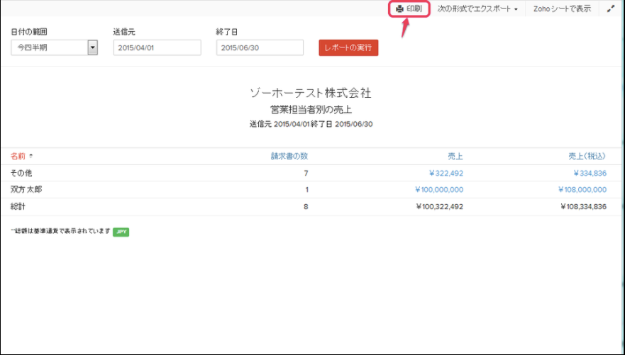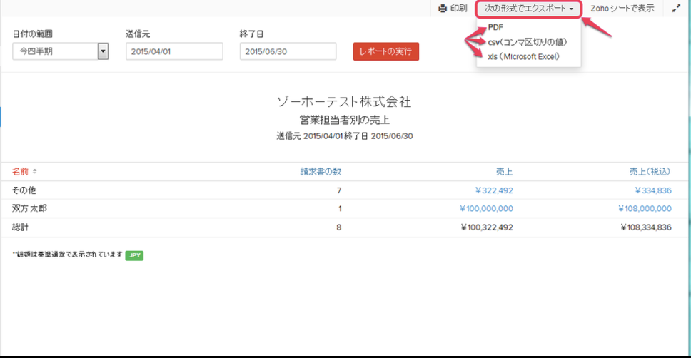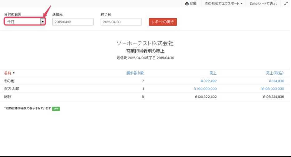 【Zoho Invoice】営業担当者別の売上レポートを作成する