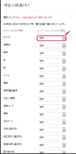 「Zoho インボイス」に関連付ける項目をそれぞれ選択します。