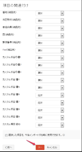 「項目の関連付け」のページが表示されます。