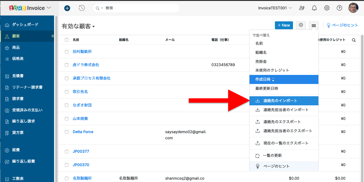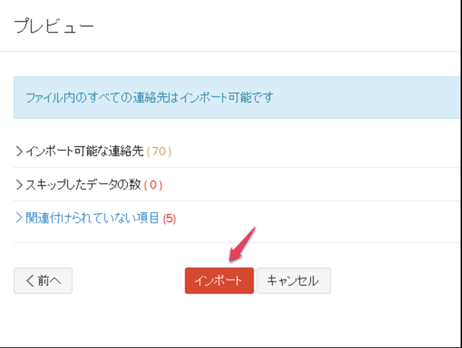 「連絡先のインポート」をクリックします。
