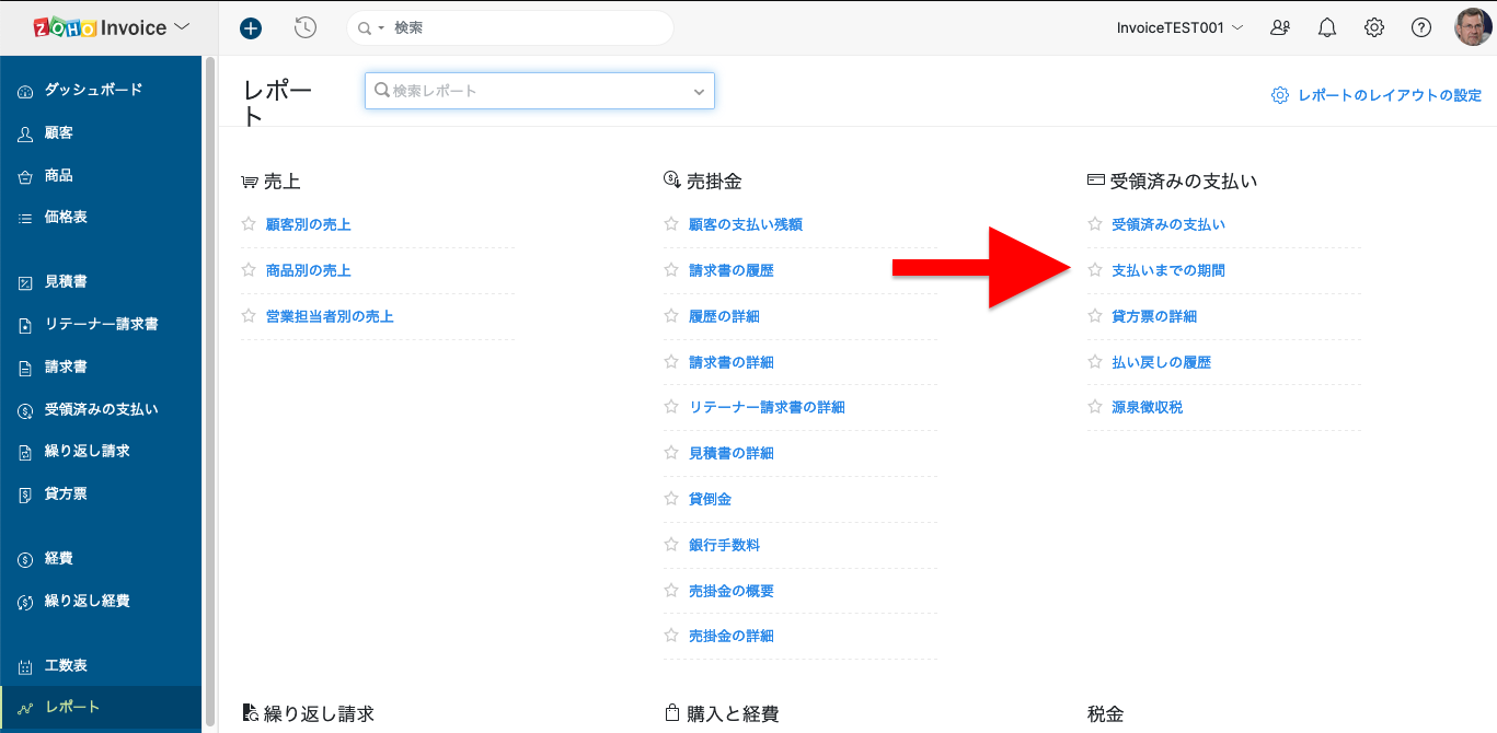 【Zoho Invoice】支払いまでの期間のレポートを作成
