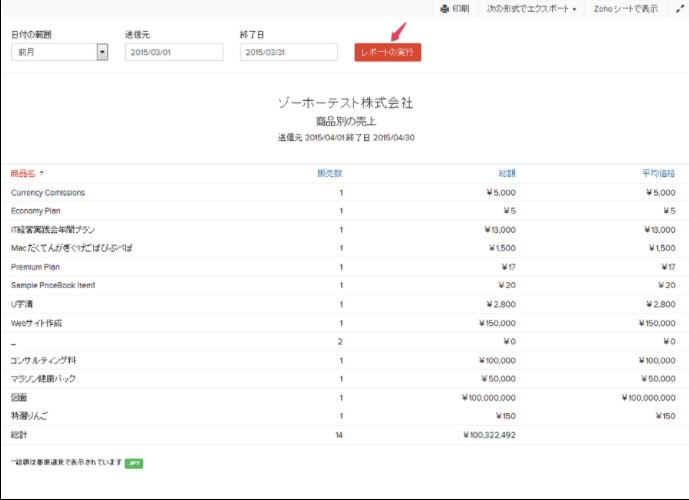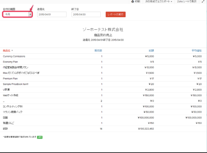 「日付の範囲」のドロップダウンリストからレポートに含める期間を選択します。