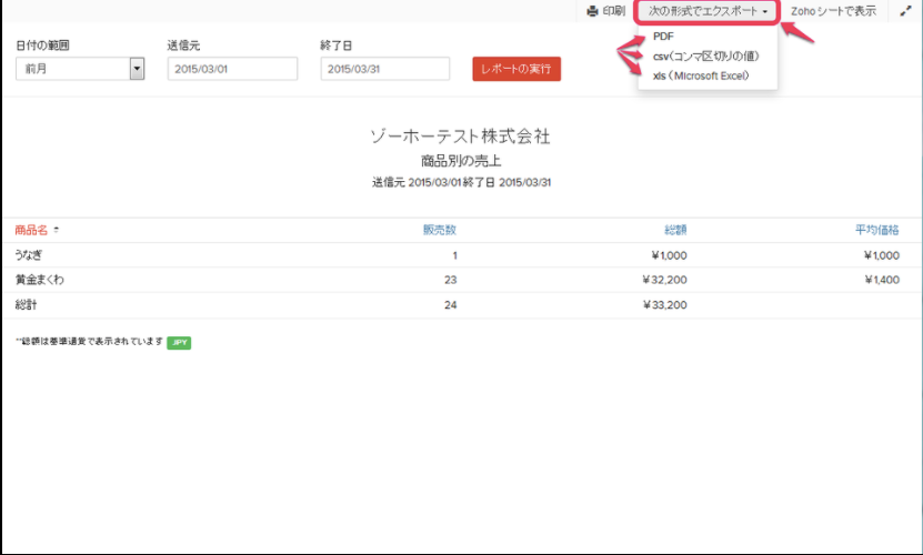 4)「レポートの実行」をクリック