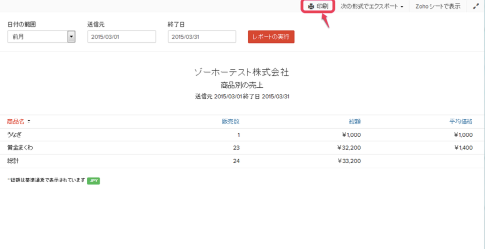 印刷する場合は、「印刷」をクリックします。
