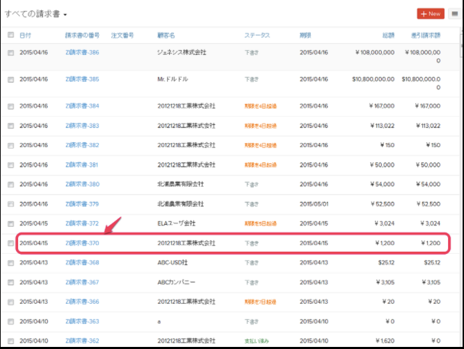 複数の担当者に送信する請求書をクリックします。