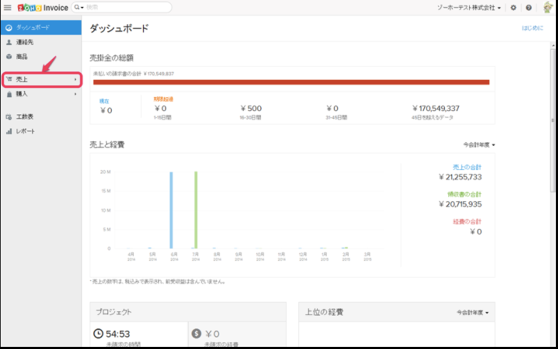 「売上」をクリックします。