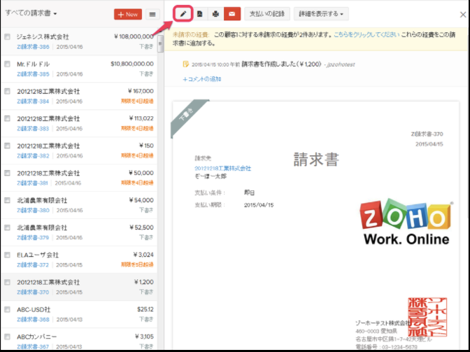 「請求書の編集」のページが表示されます。
