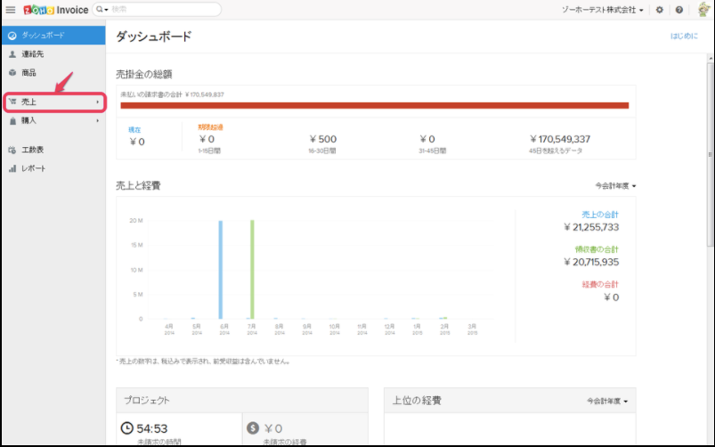 「売上」をクリックします。