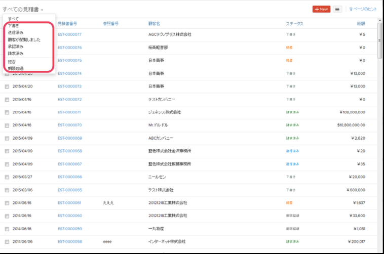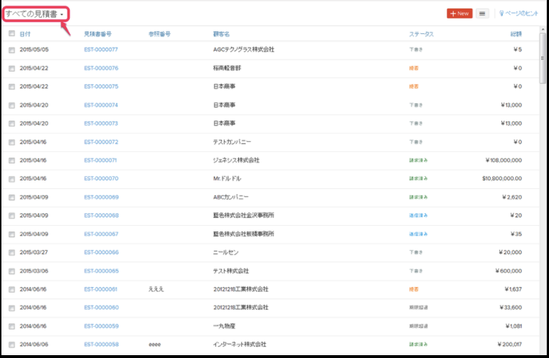 *デフォルトでは「すべての見積書」が表示されます。