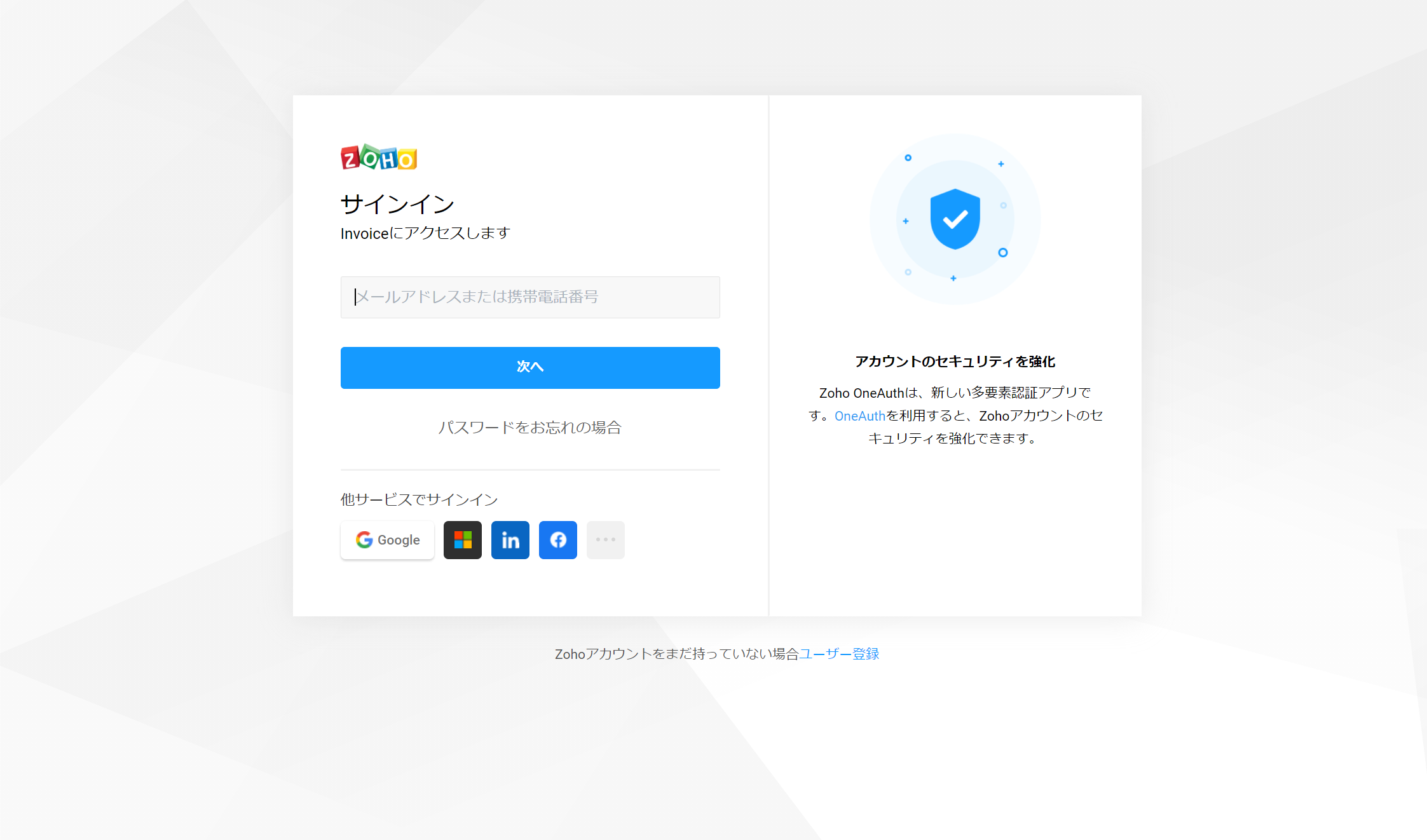 1)Zoho インボイスにサインイン