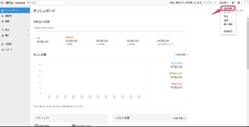 変更したい請求書へ移動します。 編集画面から請求書番号の右の歯車をクリックします。 手動/自動設定が可能です。