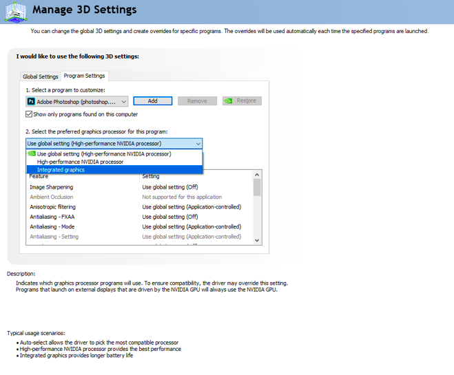 6) 優先するグラフィクスプロセッサとして、 統合型グラフィックス を選択