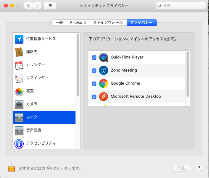 ・デスクトップアプリの場合は、マイクと画面の設定も許可してください。