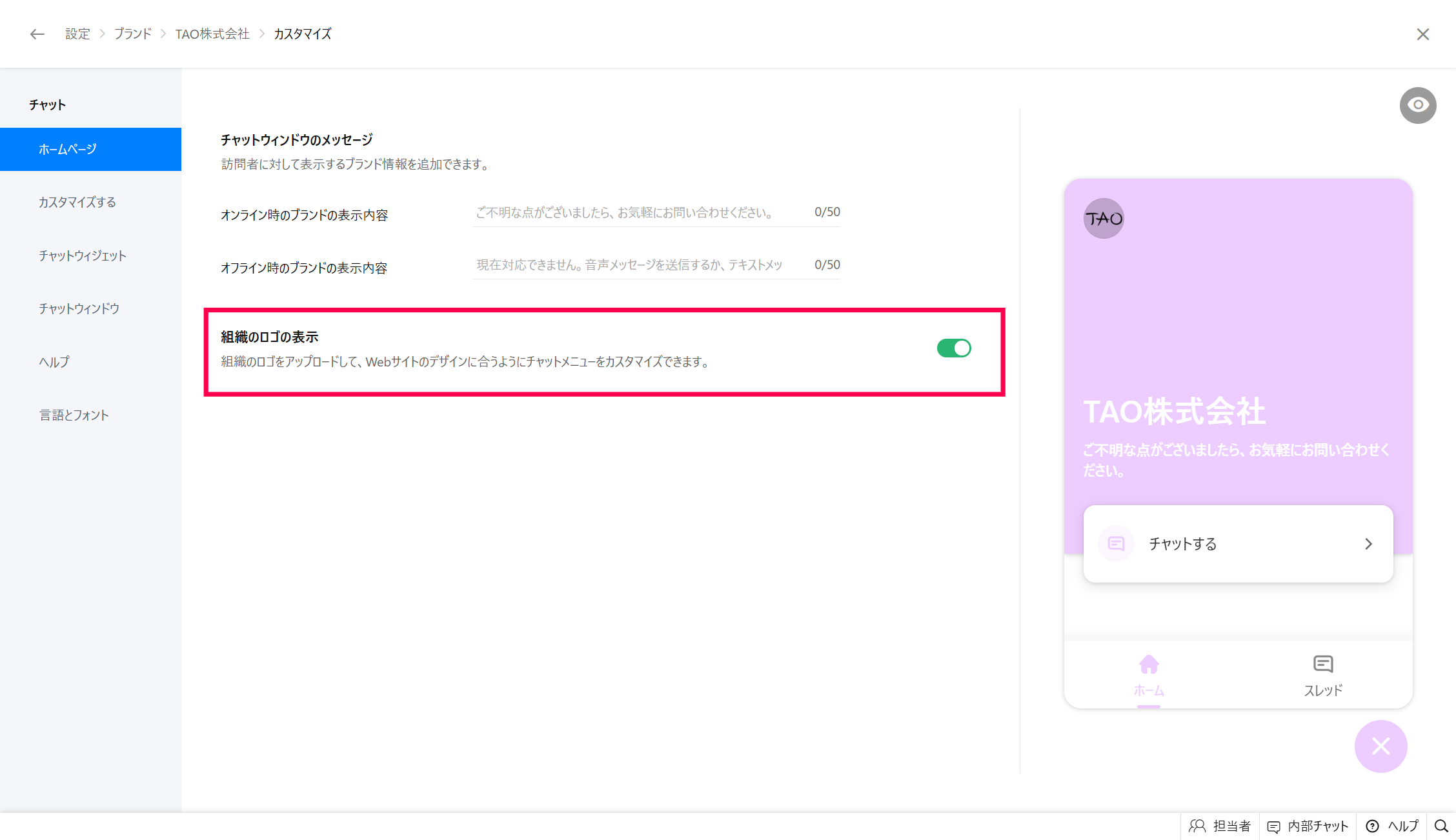 【Zoho SalesIQ】チャットに表示される会社のロゴを表示/非表示を設定する
