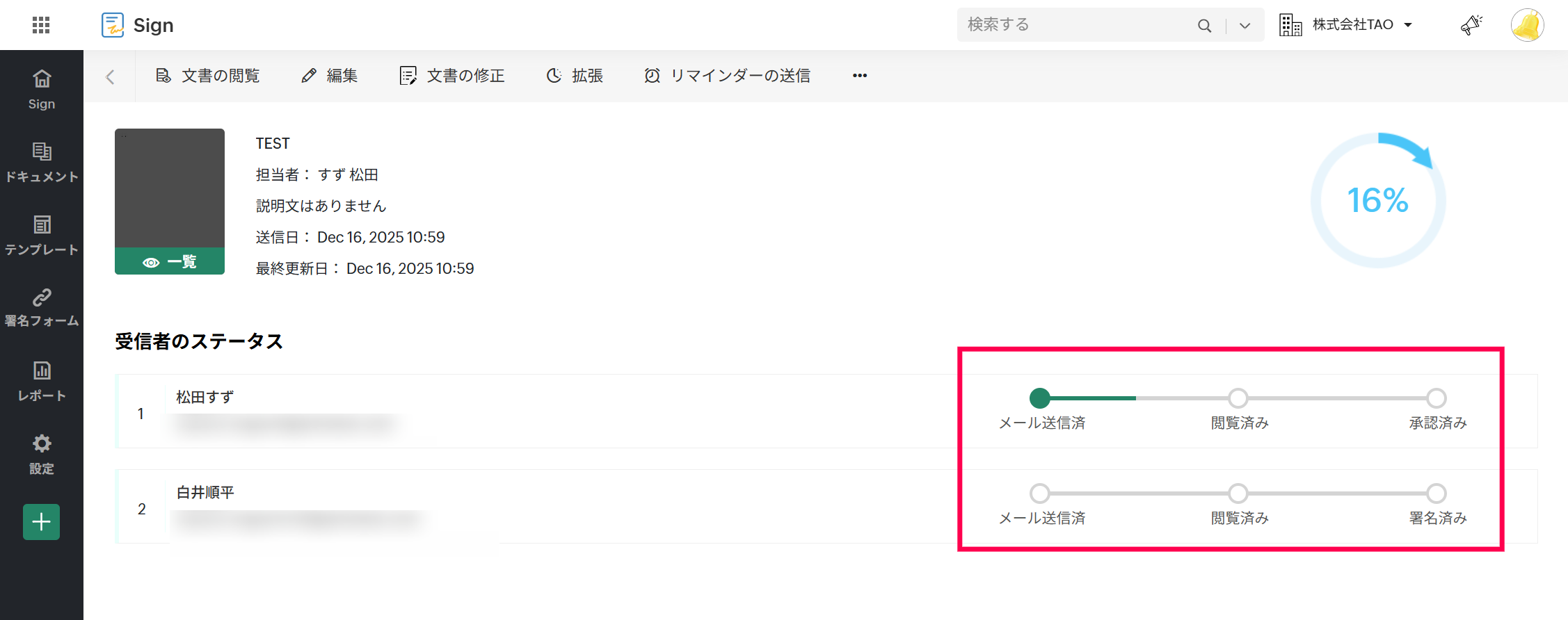 これで1:上司の承認→2:先方へ送信の流れが出来上がります。