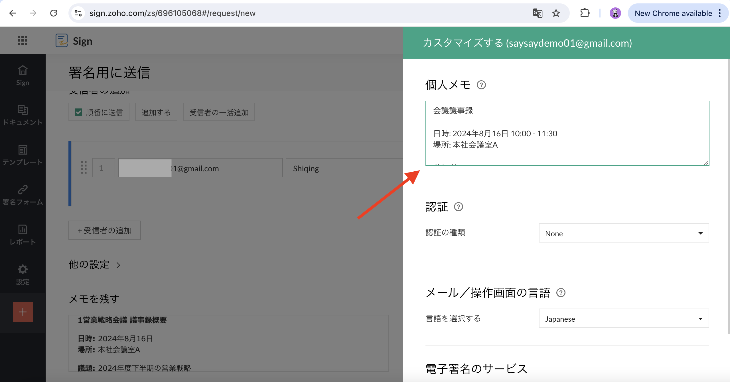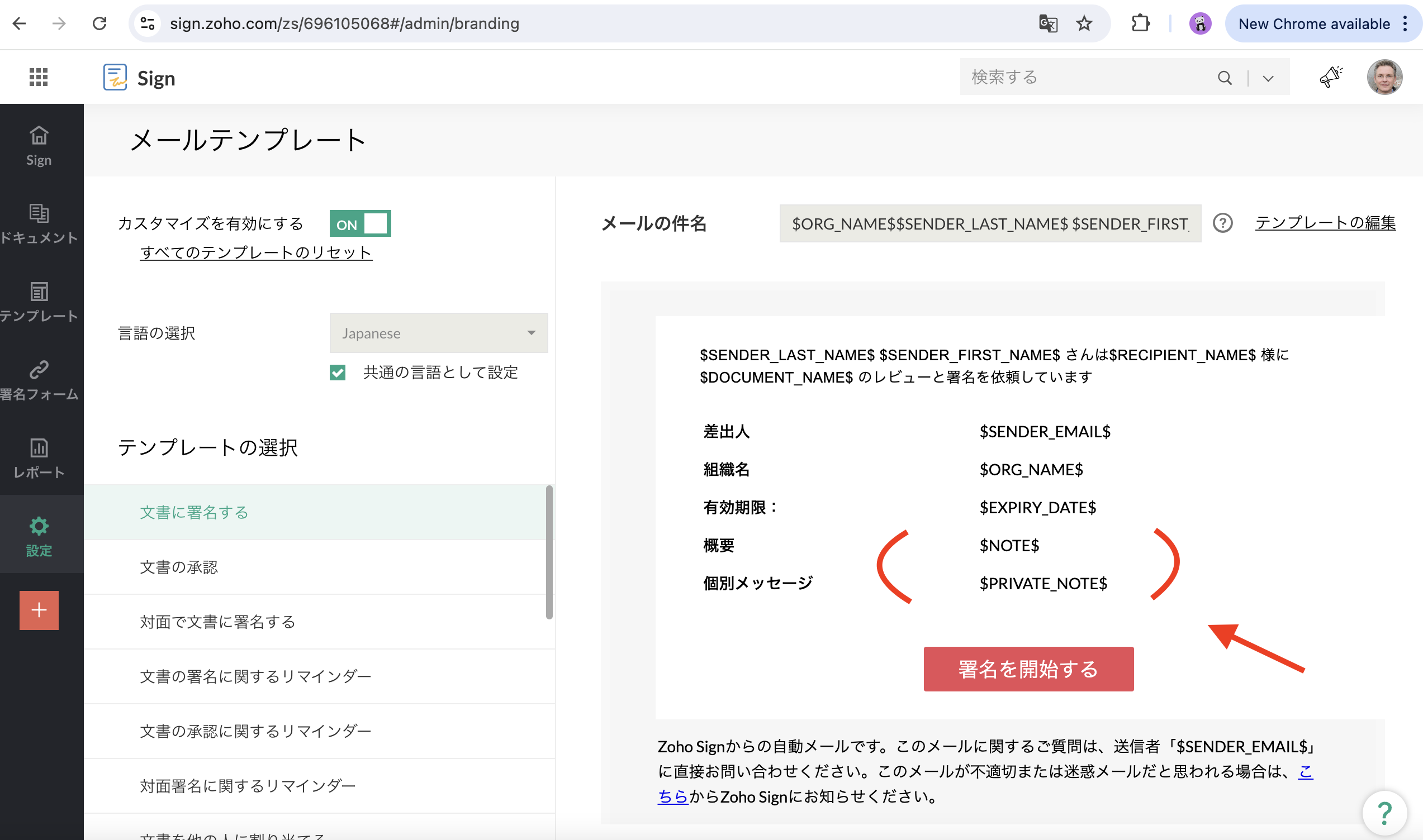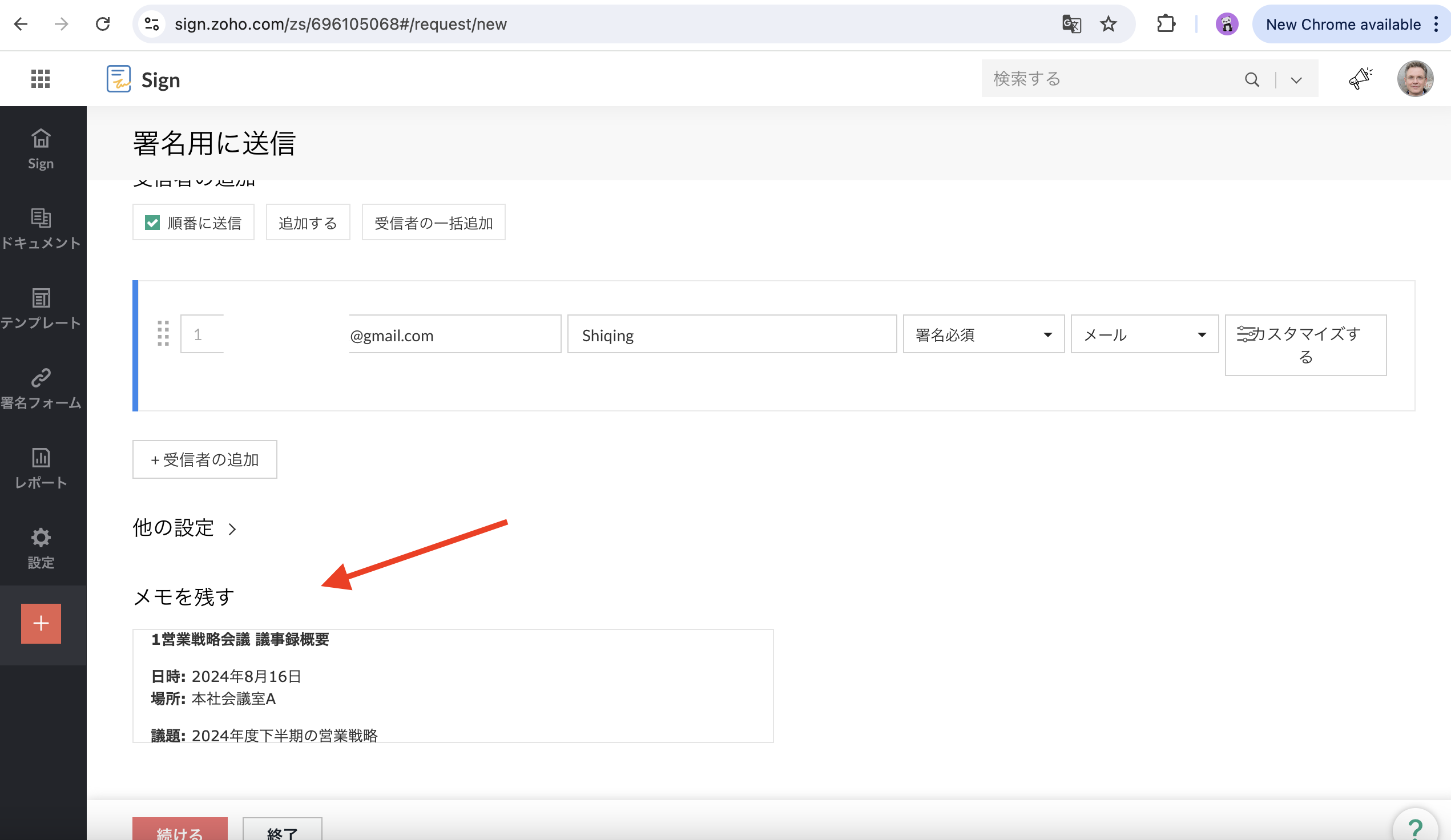 【Zoho Sign】契約書送信時のメッセージ活用