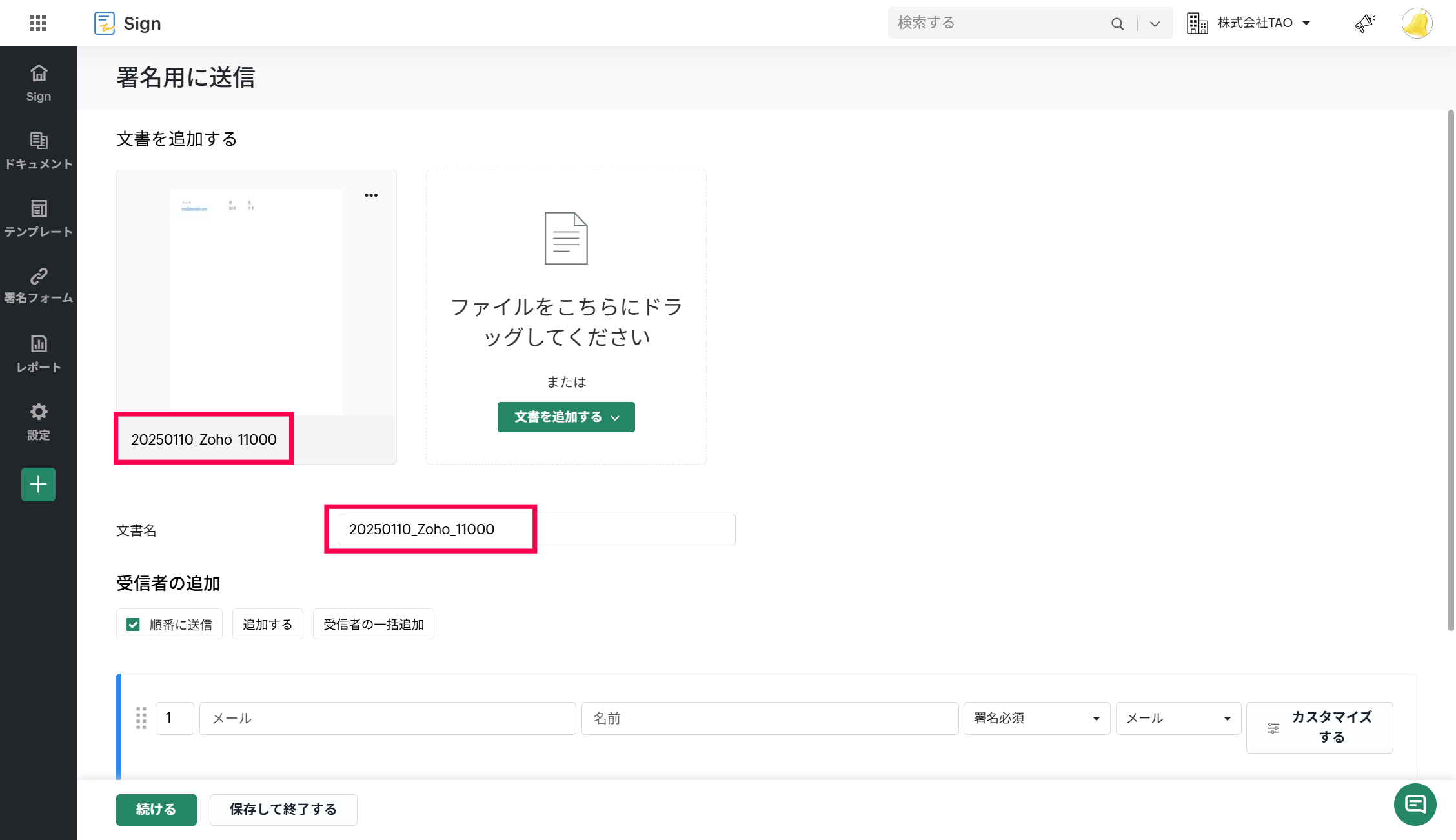 【Zoho Sign】契約書の承認フローの作成