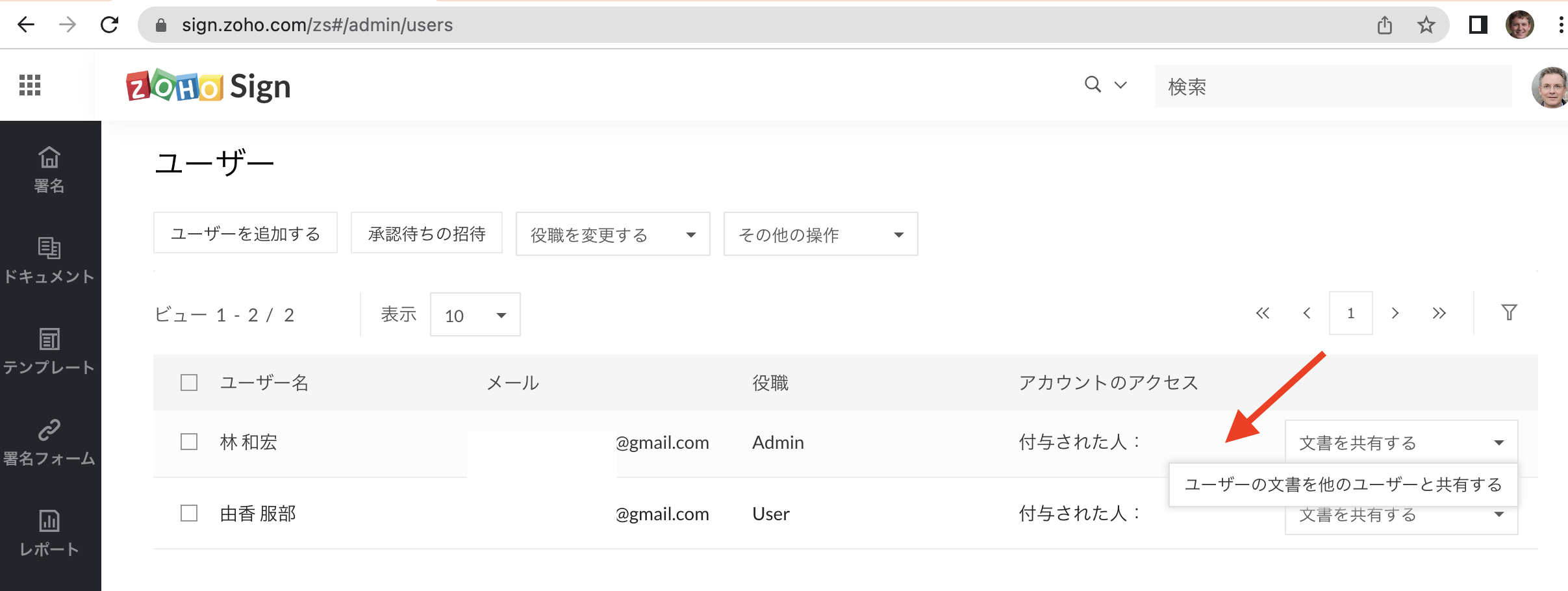 【Zoho Sign】 ユーザー招待と役職の設定