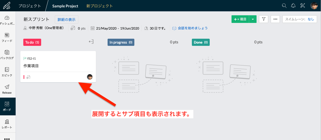 ボードに移動し、メイン項目を展開してサブ項目を表示できます。