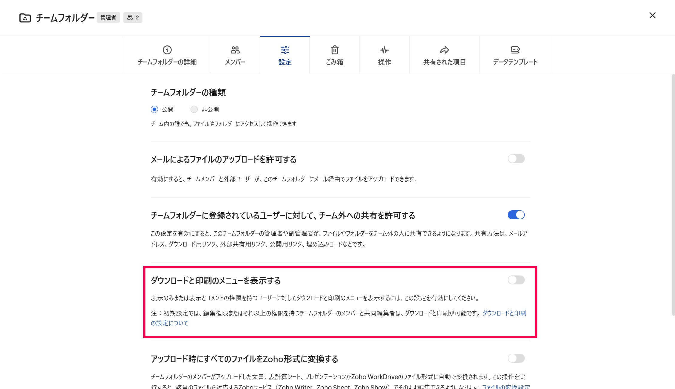 【Zoho WorkDrive】チームのフォルダーにて、ダウンロードの制限をかけることはできますか?