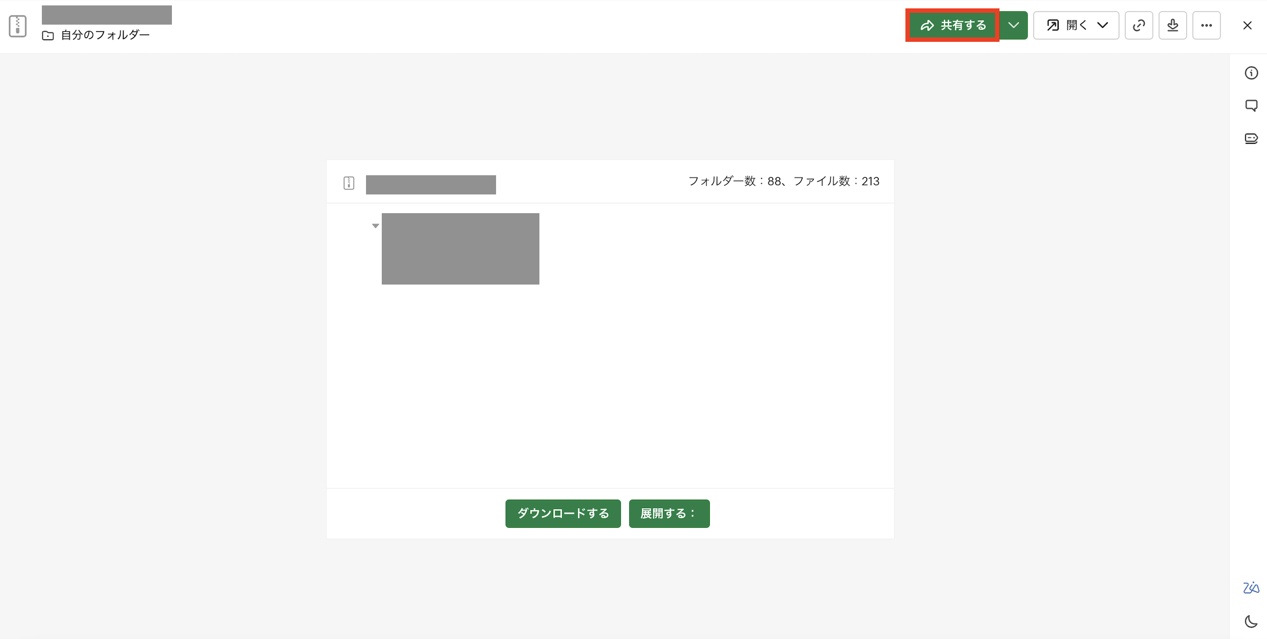 ファイルを開き、「共有する」よりメールアドレスを入力して特定の人物に送信することで、意図した相手にのみファイルを共有することが可能です。