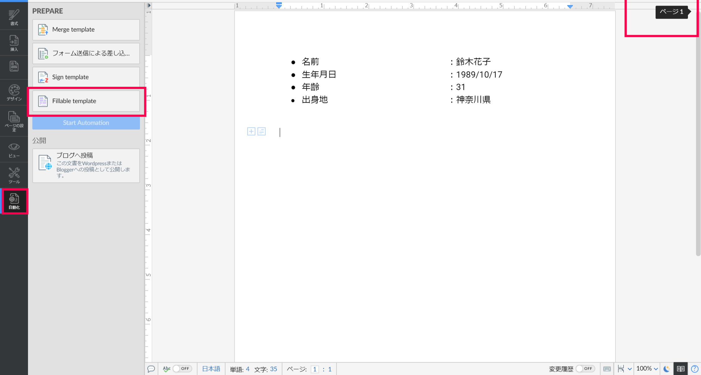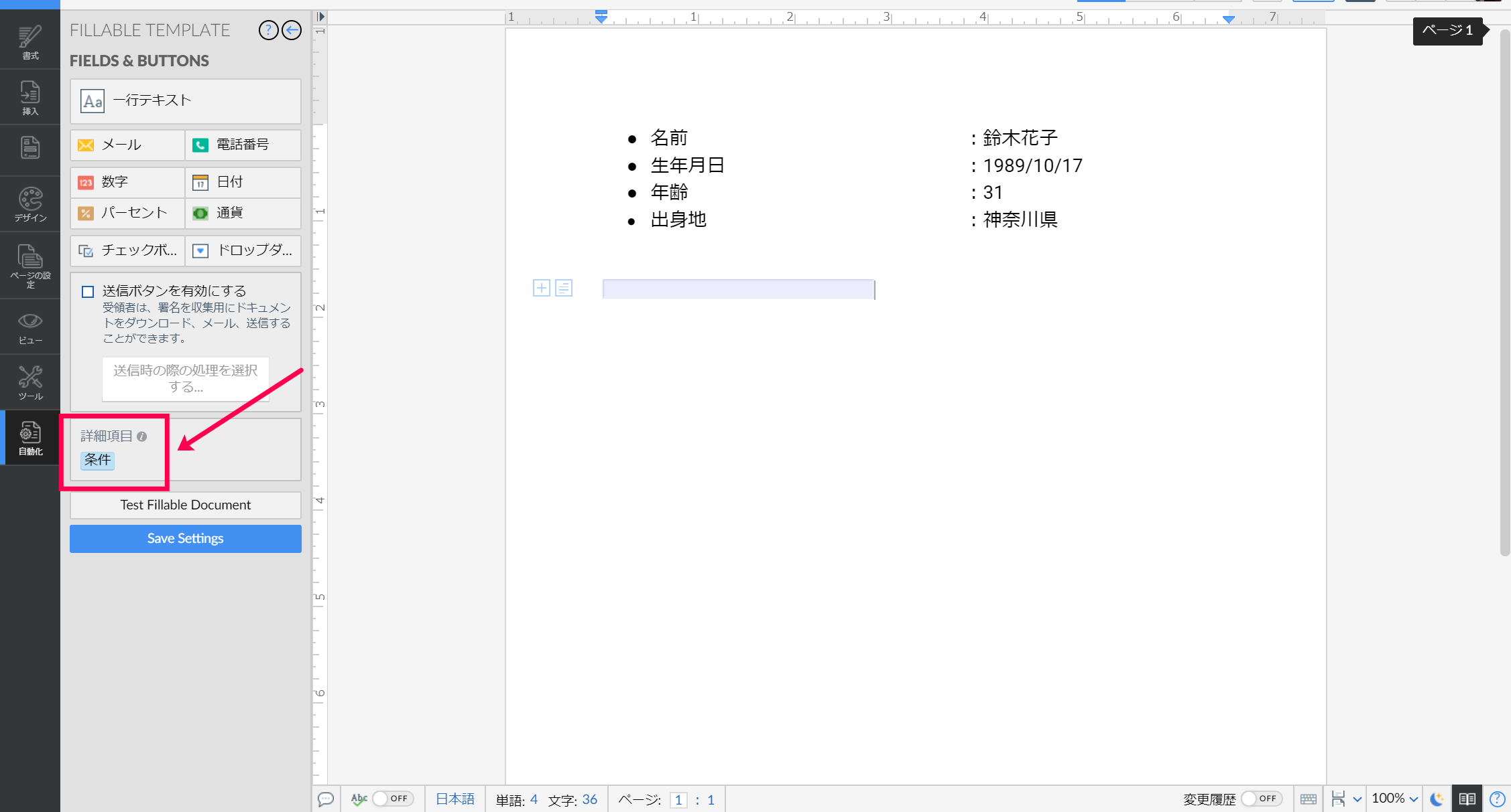 - 左上にある☰をクリック>自動化>記入式テンプレート>条件へと移動