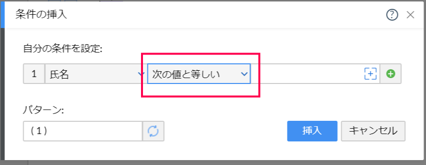 - 条件の挿入の設定ポップアップ画面が開く