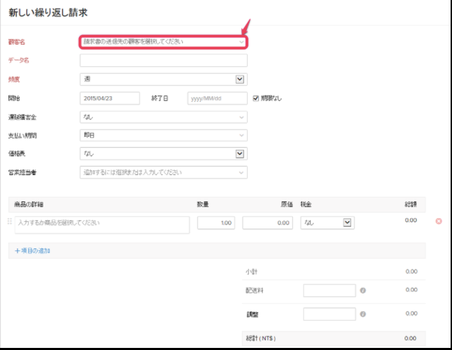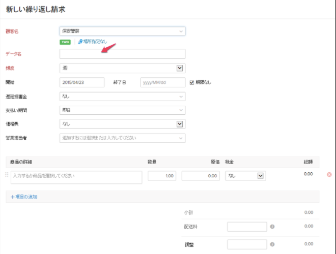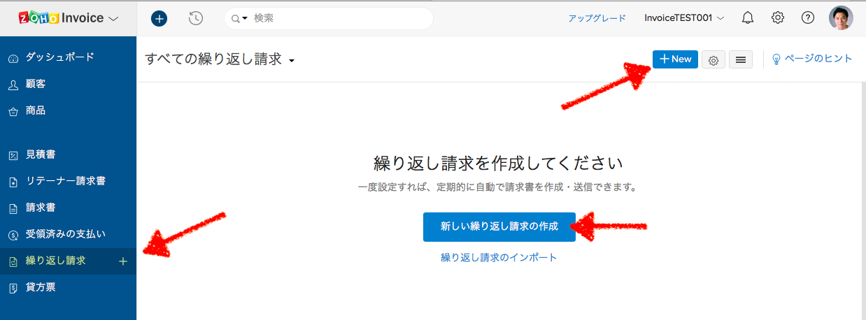 繰り返し請求を1件作成した後は、この表示はなくなります。