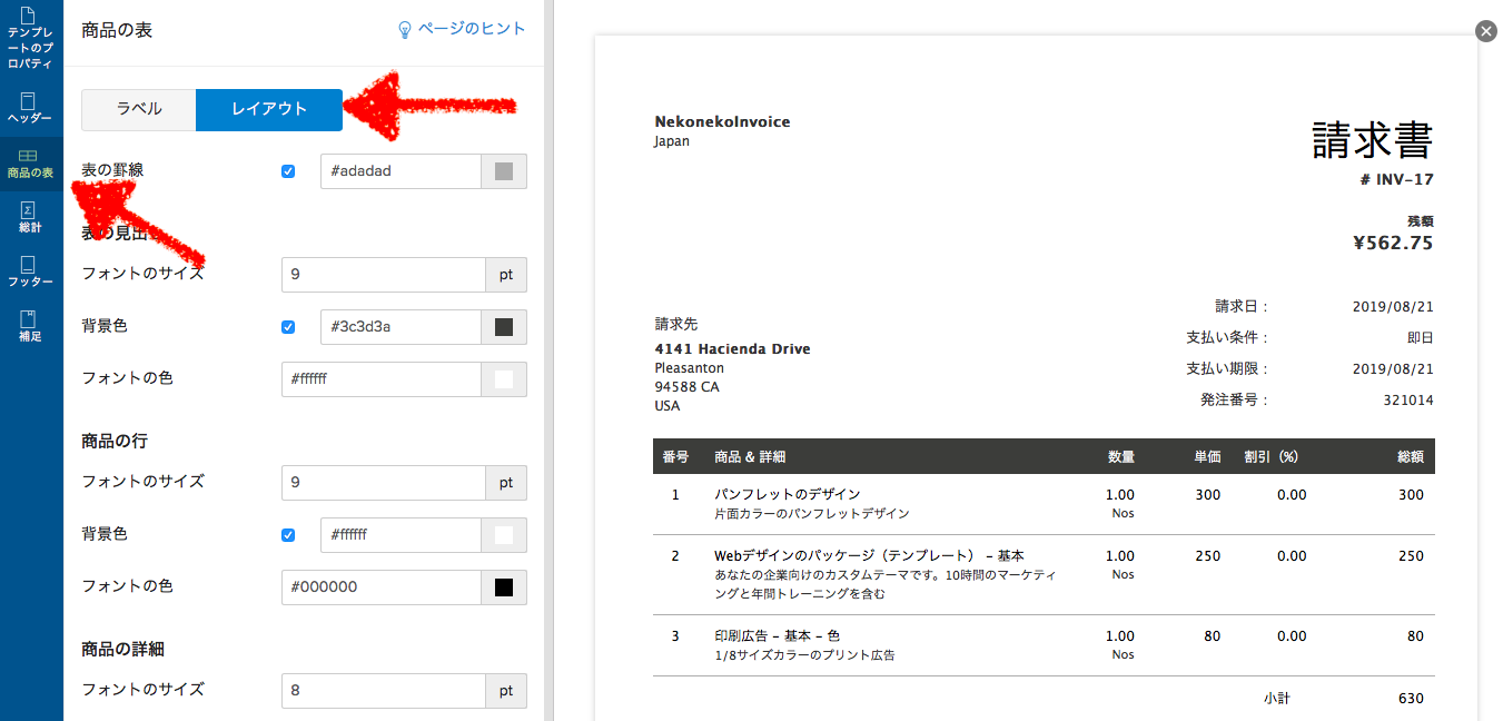 合計欄のフォントも編集する場合は、「総計」セクションから同様に変更してください。