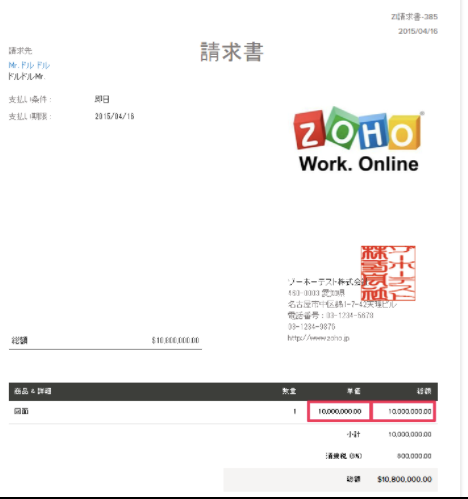 【Zoho Invoice】見積書や請求書の単価が改行されない設定